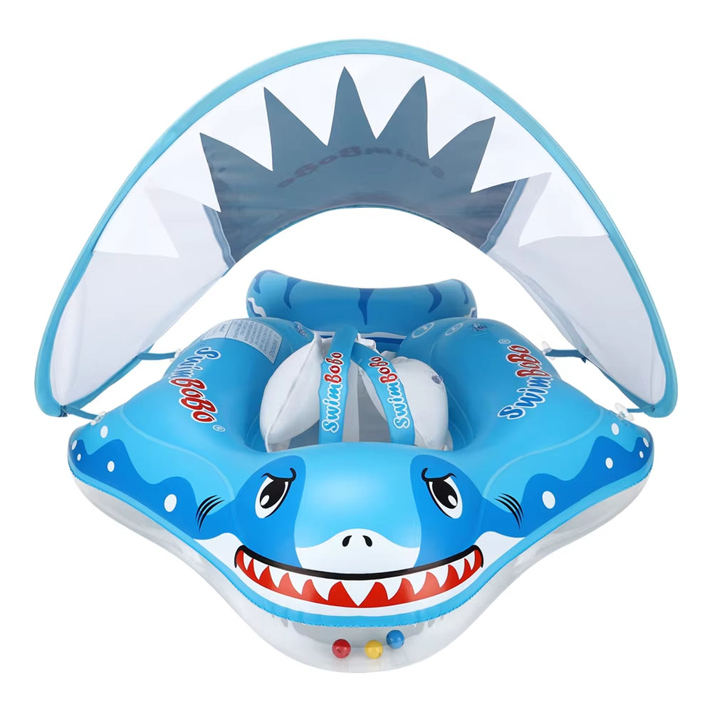 Ez a felfújható úszógumi nagyon biztonságos, a vízzel ismerkedő kisbabák számára. A puha és rugalmas anyagból készült úszógumi természetes és kényelmes pozíciót kínál a gyermek számára, ugyanakkor rendkívül biztonságos a rögzítő pántoknak, fejtámasznak és a borulást megakadályozó méretének köszönhetően. A has körüli támaszték ergonomikus, ferde testhelyzetet biztosít, közel a természetes úszáshelyzethez, alulról nem engedi kicsúszni a gyermeket. A megemelt elülső rész megtámasztja a fejet, a kezek pedig szabadon játszhatnak. A napellenző pedig védi a babák bőrét a káros napsugaraktól.